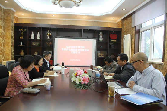 2013年9月27日上午,女生自慰 领导班子在信息楼208会议室召开“深入开展党的群众路线教育实践活动”集体学习会。学习会由学院分党委书记王丹同志主持,校党委负责联系女生自慰 “党的群众路线教育实践活动”的组织部副部长张晓辉同志,院长张斌同志、副院长卢小宾同志、副院长刘越男同志、分党委副书记徐拥军同志参加了集体会。
