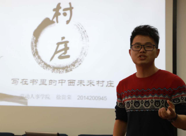 随后,徐贵荣同学做了题为“写在书里的中西未来村庄”的读书报告。他通过对西方“理想国”与中方“桃花源”的对比,讨论了他对“乌托邦”的理解,中西方的“乌托邦”思想虽有不同,但是正因这种不同的存在,而使得“各美其美”的思想局面。不同的国度虽有理念的不同,但是其理想的目标确实相同的。在这一基础上,也进一步引发了同学们对于当今社会国家治理方面的思考。