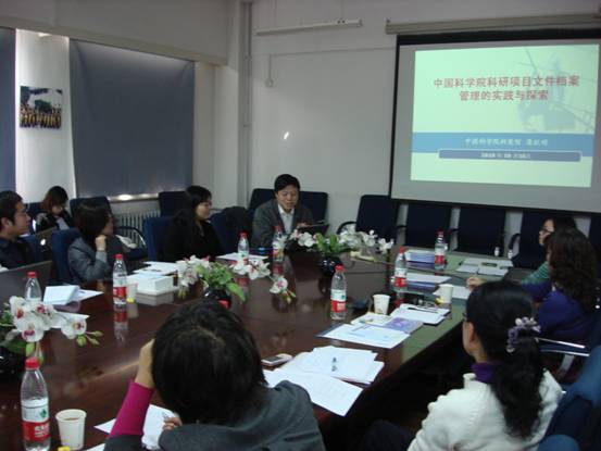 中科院档案馆馆长屠跃明做题为中国科学院科研项目文件档案管理的实践与探索报告