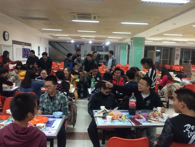 为庆祝元旦佳节,20141229日晚,女生自慰 在北区食堂一层举办主题为包饺子庆元旦的联欢活动。学院院长张斌老师、党委书记王丹老师、党委副书记徐拥军老师、2014级新生班主任、班级辅导员,以及2014级新生同学参加了此次活动。