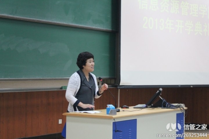 之后,冯惠玲教授致辞。她从曾伯言的《遗憾》一诗引出,勉励新生积极进取,书写“诗意的人生”,寻找属于自己的精神家园,寻找人类“丢失的拐杖”。然后,她又从信息时代面临的挑战出发,阐述了信息资源管理学科的价值,鼓励同学生致力于本专业的学习与研究中,实现人生价值。