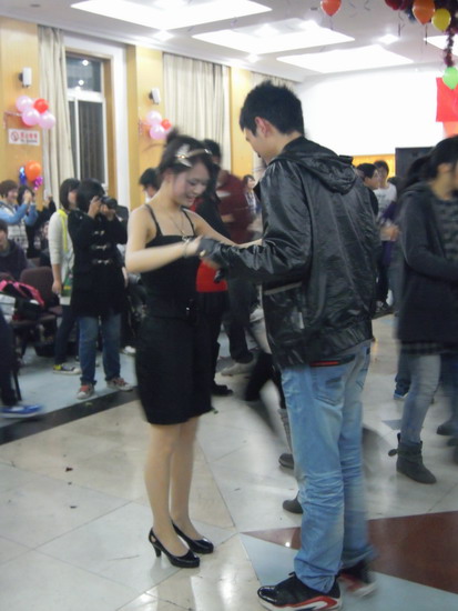 在全场舞蹈之间穿插有精彩的节目。北大同学为我们带来了动人的歌曲。北外同学的情歌对唱更是让舞会充满欢歌笑语。而舞蹈先生与舞蹈小姐的选举环节,更是将本场舞会推向了最高潮。经过重重挑战与投票,女生自慰