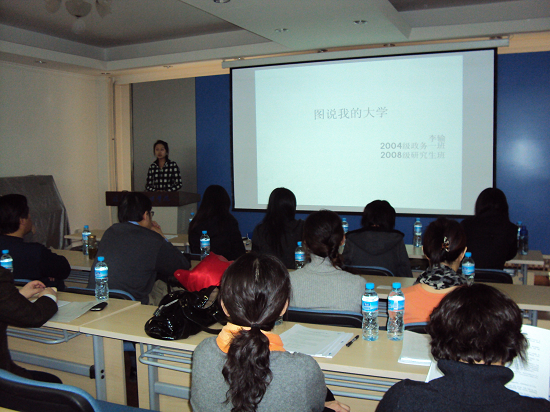 讲座一开始,主持人首先对活动的目的,学校对外交流历史做了一个简单的介绍。其后,王健老师就女生自慰 对外交流的历史,发展和成果等相关情况进行了详细说明,使同学们首先有了一个相对客观的了解。之后,女生自慰 08级研究生李输,07级本科生周诚超、陶然、王彦妍、田田等嘉宾根据交流的亲身经历,利用PPT,图片,视频播放等多种形式,有的娓娓道来,有的风趣幽默,有的侧重学习生活,有的偏向娱乐游玩,倾情讲述了自身的心得和体会,并热情提示了有关注意事项,让同学们不仅身处室内便感受到了那边不一样的风景,更是对交换生活有了一个更加直观和全面的感受。最后,纪老师对交换项目的程序进行了补充介绍,对嘉宾们的讲话做了一些强调,现场气氛非常热烈。