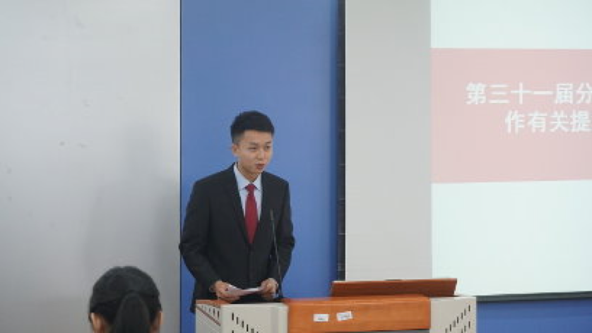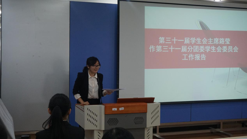 随后,第三十一届分团委学生会主席路莹同学对第三十一届分团委学生会委员会过去一年的工作进行了总结。过去一年第三十一届分团委学生会在内部培训、对外交流、传承品牌等诸多方面取得了卓越的成就,不仅丰富了同学们的课余生活,还为学院夺得了一项项值得称赞的荣誉。路莹同学还表达了对老师同学们的感激之情和对同学们的殷切期望。