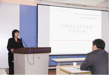 梁继红副教授代表项目组做了“档案:中华文明的核心载体——档案事业与中华文明论之一”的主题发言,分别就“关于档案事业与中华文明关系”、“档案:中华文明的核心载体”等问题做了简要阐述,认为中国档案事业与中华文明同源共生、历代档案管理是中华文明的动态传承、经史是中华文明超越时空的固化传承,并分析了历代档案文献是如何作为中华文明的核心载体得以呈现的。
