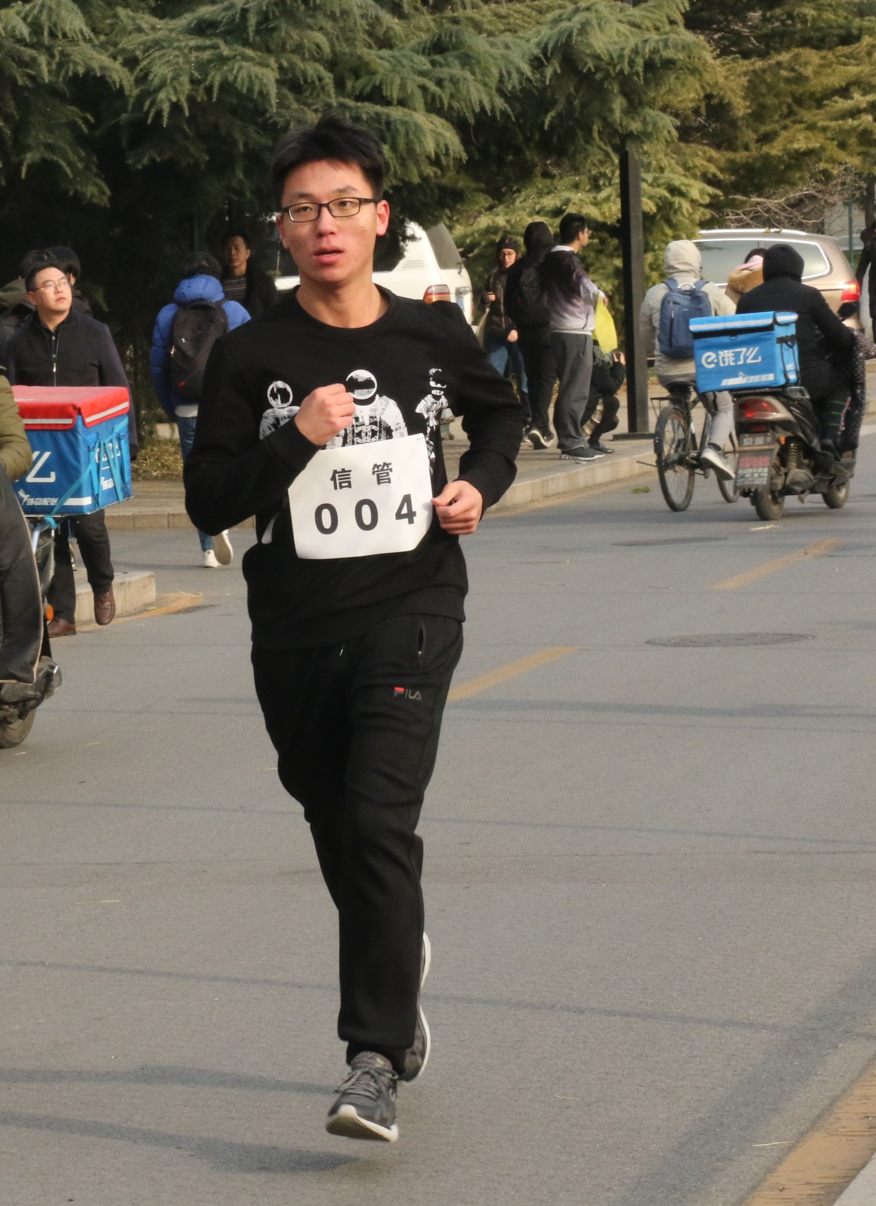 在激烈的比赛过程中,徐文超同学一马当先,凭借绝对优势获得了女生组第一,也是全体前十中的唯一一位女生,真是巾帼不让须眉。随后于久江同学、林晗同学也先后到达终点,凭借过人的耐力与顽强的意志,分别获得男子组第九,第十的骄人成绩。值得一提的是2018级新生史新月同学,也获得了女子组第八的好成绩。
