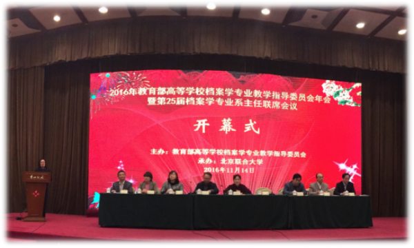 2016年教育部高等学校档案学专业教学指导委员会年会暨第25届档案学专业系主任联席会议于11月14日在北京市香山饭店拉开帷幕。本届会议由教育部高等学校档案学专业教学指导委员会(以下简称教指委)主办,北京联合大学承办。