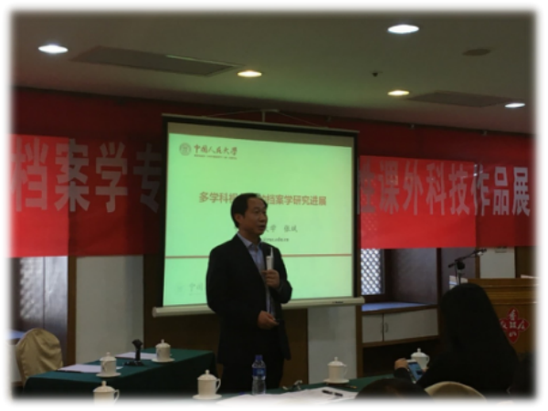 张斌院长在下午的档案学术报告会议上以“多学科视角下的档案学研究进展”为题,基于时代日趋多元化发展的背景下,档案学发展面临诸多新挑战。详细阐述了历史学、管理学、法学、社会学、传播学以及信息技术学六个学科与档案学的关联。张院长指出,这六个学科并不是简单地嫁接到档案学,而是一种交流和融合,在其他学科影响档案学的同时,档案学也开始影响其他学科。