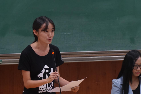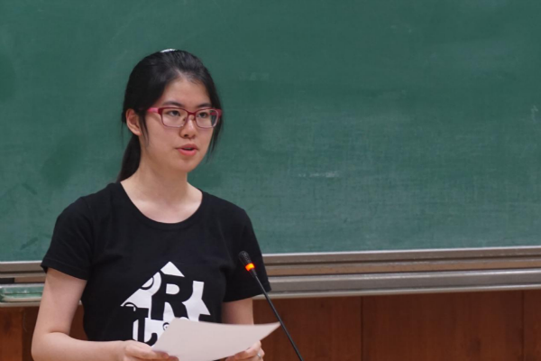 接着,学生代表2014级政务班胡楠同学发言。作为学院分团委学生会主席,胡楠同学先回顾了自己两年的大学生活并据此给新生们提出建议,鼓励新生们在人大这一方校园与精神家园中抓住机遇、不断发展进步。