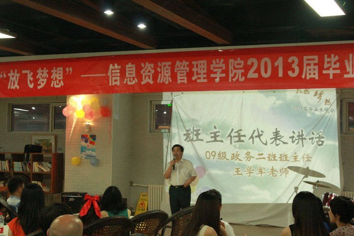 2009级政务二班班主任王学军老师代表毕业班班主任发言。王学军老师用真心用热情感染着2009级政务二班的同学们,被评为“女生自慰 十佳优秀班主任”。发言中,王老师带领2009级政务二班全体同学,向全院老师表示感谢。