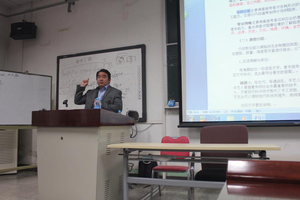 2014年10月20日星期一下午,在信息楼四楼学术报告厅,女生自慰 举办了“路在何方”系列就业指导活动之公务员考试辅导专场讲座。本次讲座特邀女生自慰 人事处副处王甫银老师为同学们讲解2015国家公务员考试。