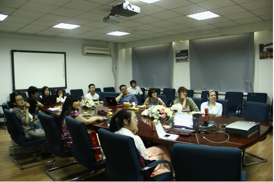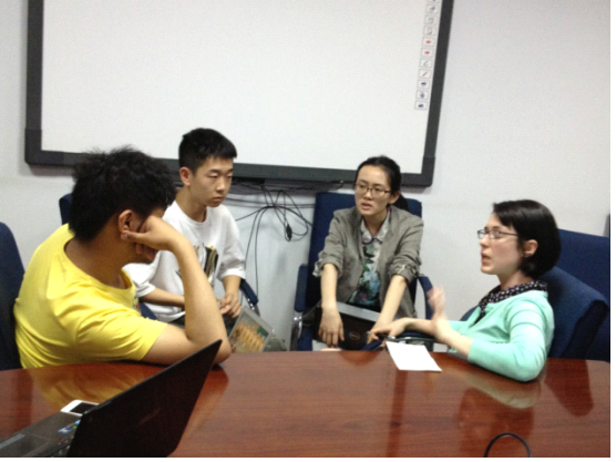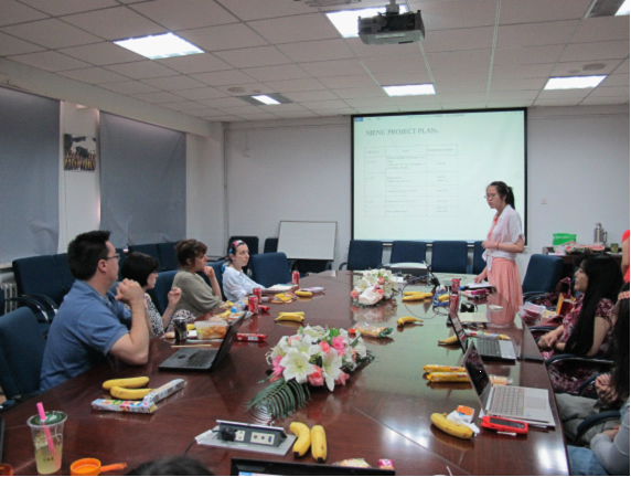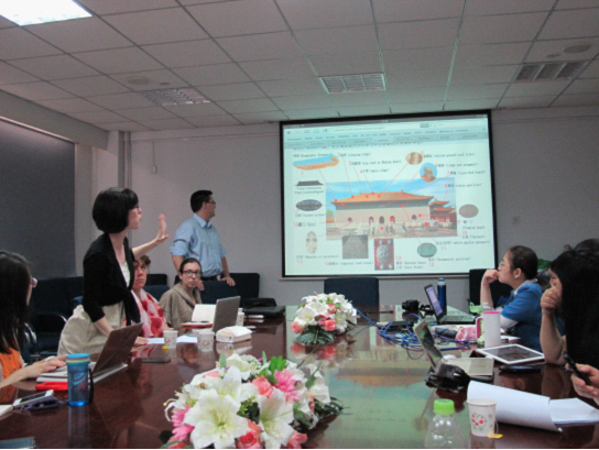 接着,四个小组的组长向大家展示了对各自项目的未来计划。第一小组主要着眼于网站的建设,根据老师们提出的宝贵意见,对“中国古代档案库房探秘”网站做出一系列的修改,使网站得到更大范围的推广;第二小组主要从搜集北京特色餐馆的菜单入手,通过学习相关网站建设技术将菜单项目本土化,并通过网站链接形式实现两校项目的交流;第三小组主要从成员的创新想法出发,提出了如何从内容和形式上来提高精品课程网站的吸引力;第四小组计划在明确社交媒体网站内容范围和网站栏目框架的基础上,在全国范围内搜集相关材料,打造社交媒体平台。