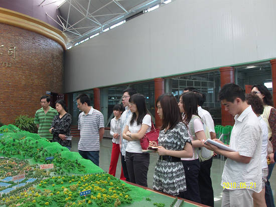接着,一行人来到了工业园区进行参观,映入眼帘的是宏伟的整体规划模型,蔡家洼村地理位置优越,依山傍水,据解说员提到说这里将建设商务旅游总部基地,建造特色的建筑;设置农业大棚生产,发展特色的蔡家洼村豆腐产业;此外还规划了观光工业区,这里有张裕解百纳,还建立综合科技楼,污水处理场,践行可持续发展道路;另一大部分土地发展为农业园区,特色的苹果园区、樱桃园区、葡萄园区、中草药园区,这里有果园,有花卉,有药材,种类齐全,四季常青;还一大特色是发展山区旅游,建设玫瑰园、蝴蝶谷等景点,让游客体验登山时美景尽收的享受。总之欲把蔡家洼村建设成一个集观光旅游、度假、办公、接待、体验生活为一体的美丽而引人的新农村。