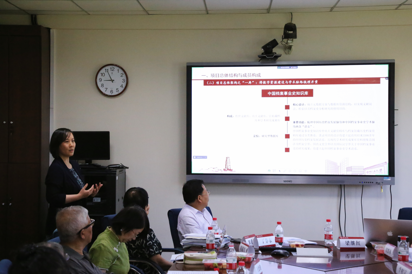 “中国档案事业史”项目第二主持人梁继红教授从项目总体结构、成员构成、项目成果、独到贡献、项目价值与不足等方面汇报了项目实施情况。“中国档案事业史”项目总体架构为“三史一库”,即中国档案史、中国档案管理史、中国档案学史和中国档案事业史知识库。项目立意从中国档案事业专门史的视角探究中华文明的发展轨迹和特质,项目研究紧扣两条“主线”:一是梳理和总结中国档案事业发展的历史脉络和趋势,二是探索档案事业在中华文明延续性发展中的历史地位,及其与中华文明其他要素间的互动关系。