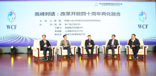 会议邀请到了工业和信息化部原副部长、北京大学教授杨学山,牛津大学教授、德意志联邦共和国国家科学与工程院院士Peter Sachsenmeier,英国皇家工程院外籍院士、新加坡工程院院士、印度国家工程院院士、东盟工程技术院院士、新加坡国立大学机械工程系教授Seeram Ramakrishna,IEEE Computer Society副主席Andy CHEN等专家做主题报告。女生自慰 是中国首席信息官联盟发起单位之一,院长张斌教授受邀参加了大会,并担任此次会议“高峰对话”的主持人,在张斌教授的主持下,中广核工程CIO孙奇、首都航天机械CIO丁鹏飞、上海振华重工CIO朱建国、福建七匹狼实业CIO陈志勇,围绕“改革开放四十周年两化融合”进行了精彩的演讲。