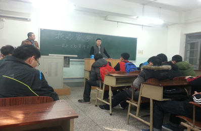 在学习经验分享环节,2013年秋季学期学习成绩优秀的赵群、林鹏和郭靖宇同学分别介绍了自己的学习经验,以及对大学学习态度、学习方法的认识。