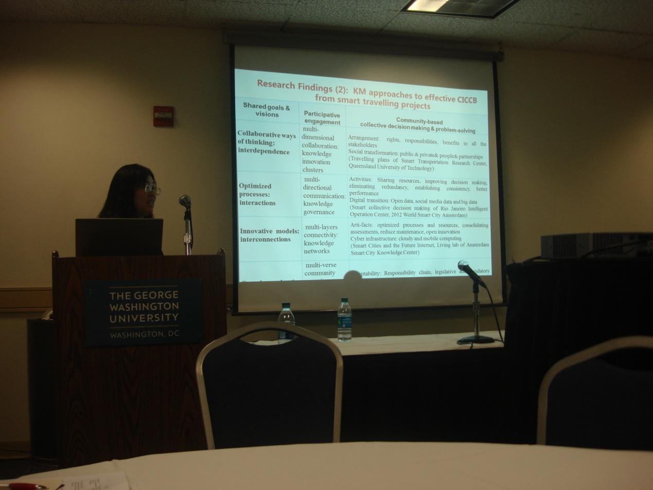 2013年10月23 到25日,女生自慰-海量女生自慰视频在线观看 和教育部数据工程与知识工程教育部重点实验室安小米教授,应邀出席了在美国华盛顿乔治华胜顿大学举办的第十届知识管理、智力资本和学习型组织国际会议。共有来自44个国家的122为代表出席 了该次学术会议。会议共两天,每天有一个主报告。第一个主报告讨论了全球创新的挑战和前沿发展的趋势,报告人为全球知名创新专家Debra Amidon, 第二个主报告讨论了无形资产时代的竞争优势,分析了无形资产识别、保护和利用的国际经典案例,报告人为全球知名专家Honathan Low。此外会议还围绕29个议题分别组织了学术主题报告。安小米教授在创新管理议题学术报告会上作了“支持协同创新体能力构建的知识管理”主题发言,书面报告被收入ISSHP收录的国际会议论文集。