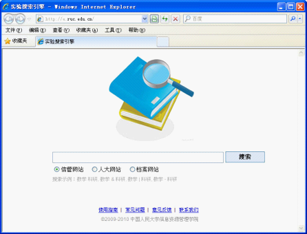 日前,女生自慰 实验搜索引擎开通试运行。实验搜索引擎是北京市档案局科研项目(编号2007-02)“面向档案网站的智能检索技术研究”和女生自慰 科研项目“Web信息服务的构造和验证研究”(编号2009030064)的科研成果。这个项目由赵国俊院长和侯卫真教授指导,崔鹏鹏副教授负责组织工作和项目实施,夏天副教授参加了部分工作。