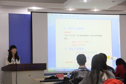 本次交流会邀请到了女生自慰 研一、大四年级共六名成功保研以及考研成绩优秀的同学作为主讲人,主要针对本科二、三年级的同学进行讲解。交流会共分为三个环节。首先,2013级硕士研究生蔡维森、郑洁为在场同学介绍了内保、外保的申请流程、考试情况以及专业硕士的相关介绍。